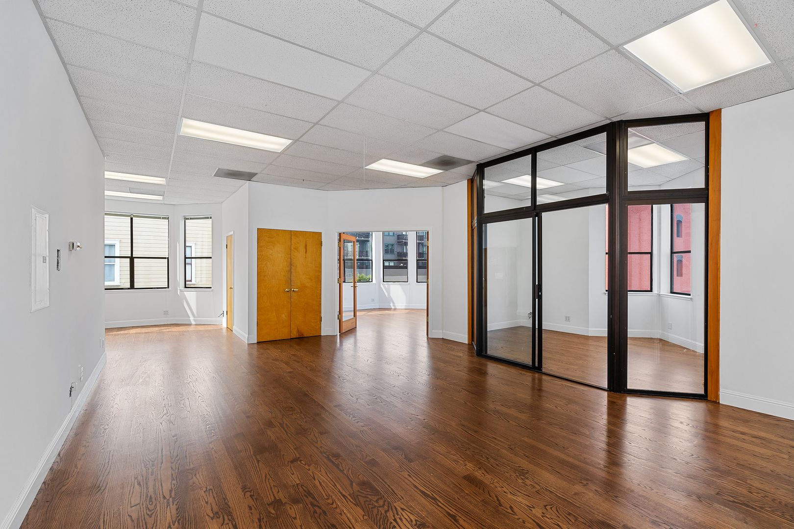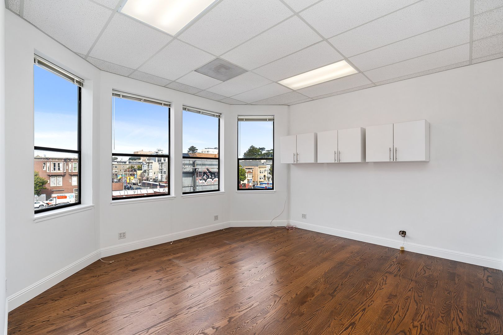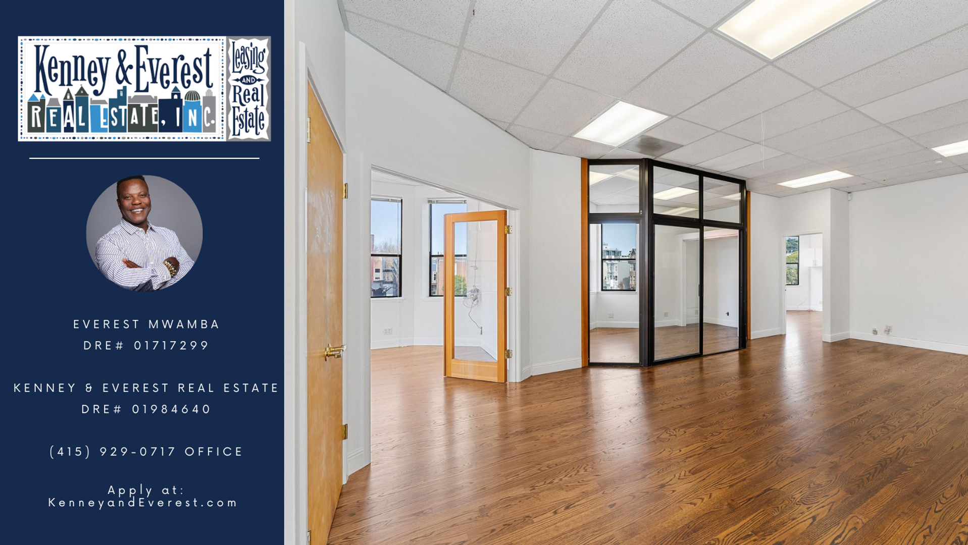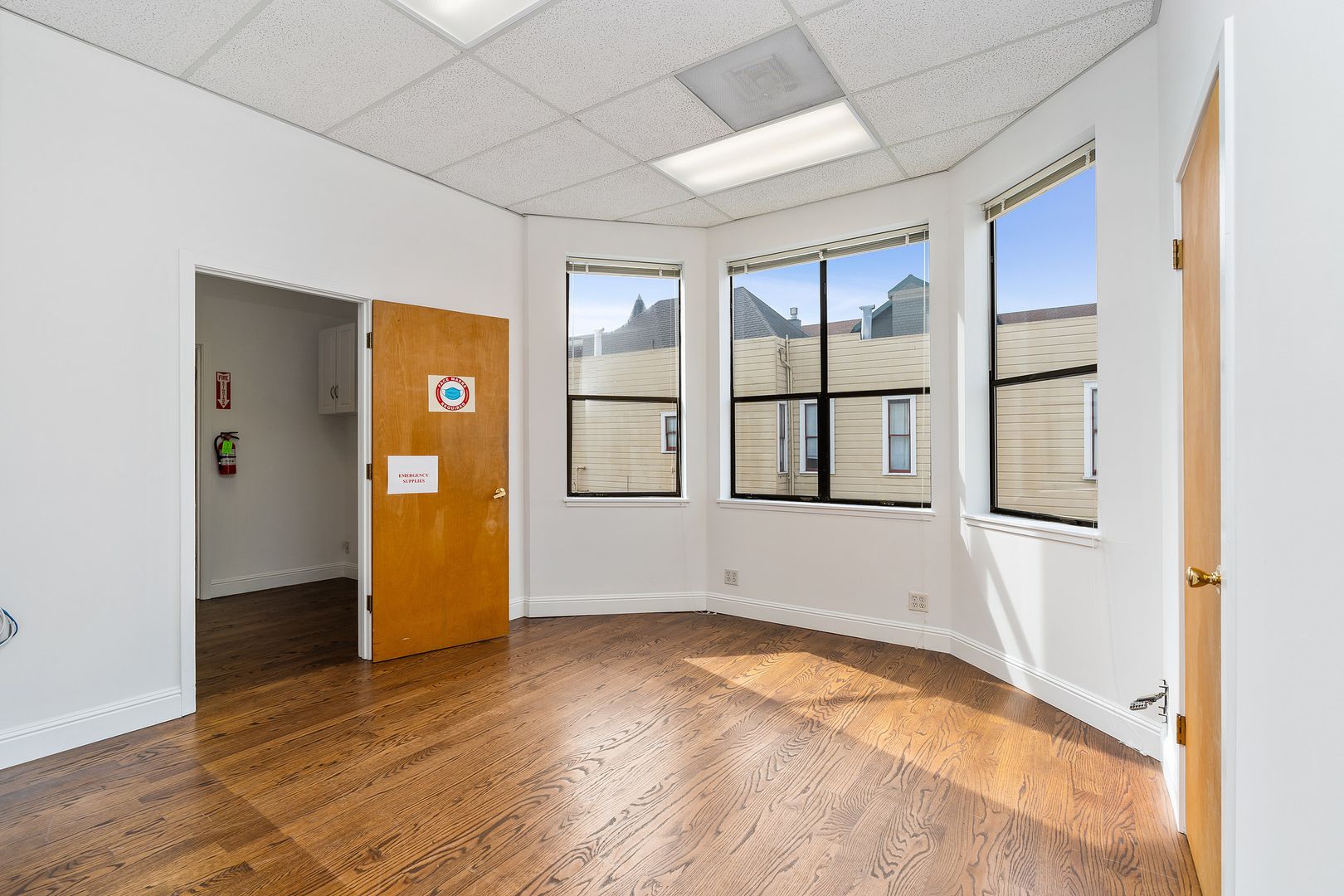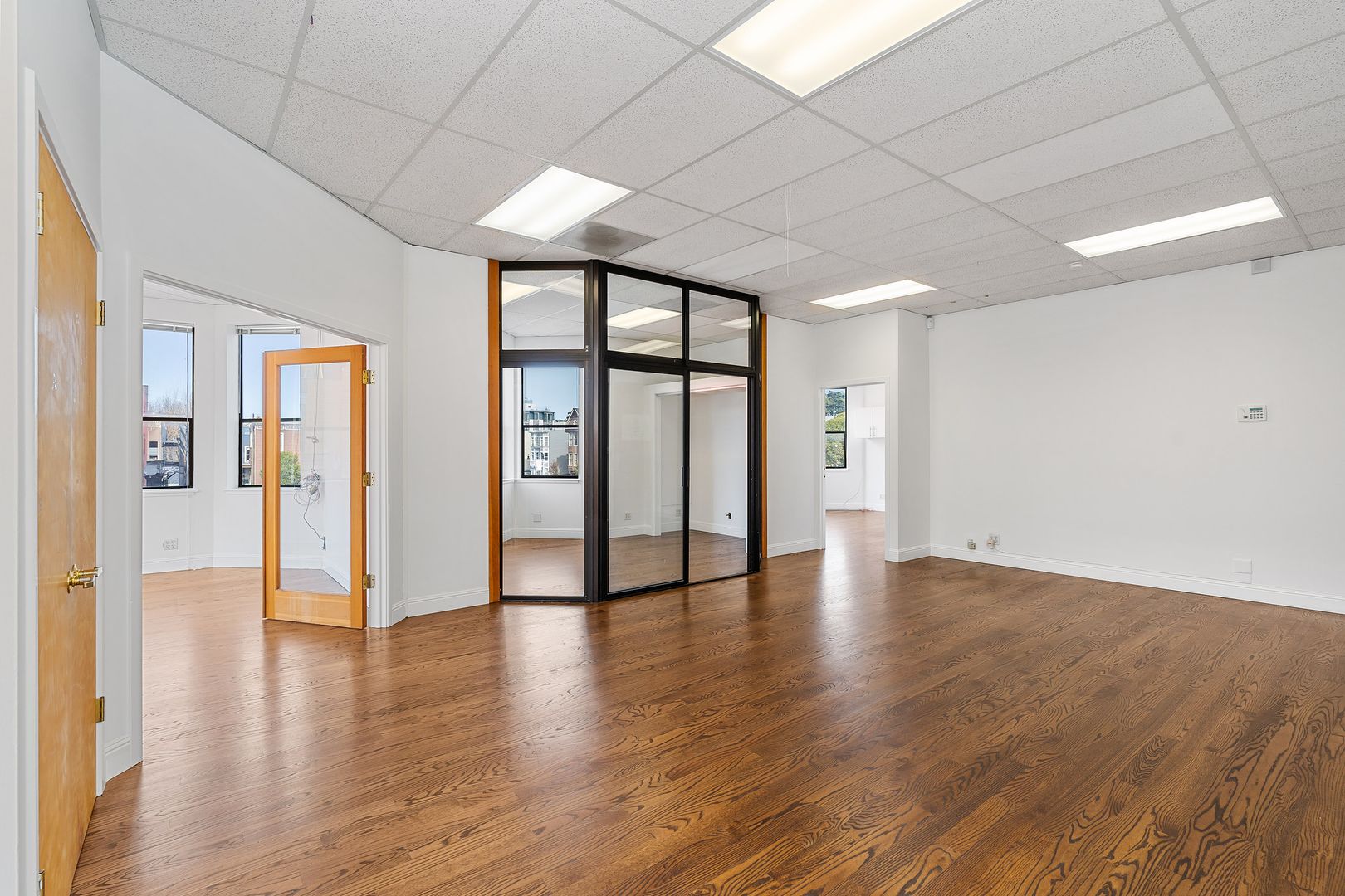 Large commercial suite in a building on Divisadero between Fell and Oak. Floors are hardwood. Space can be divided and leased in small portions.