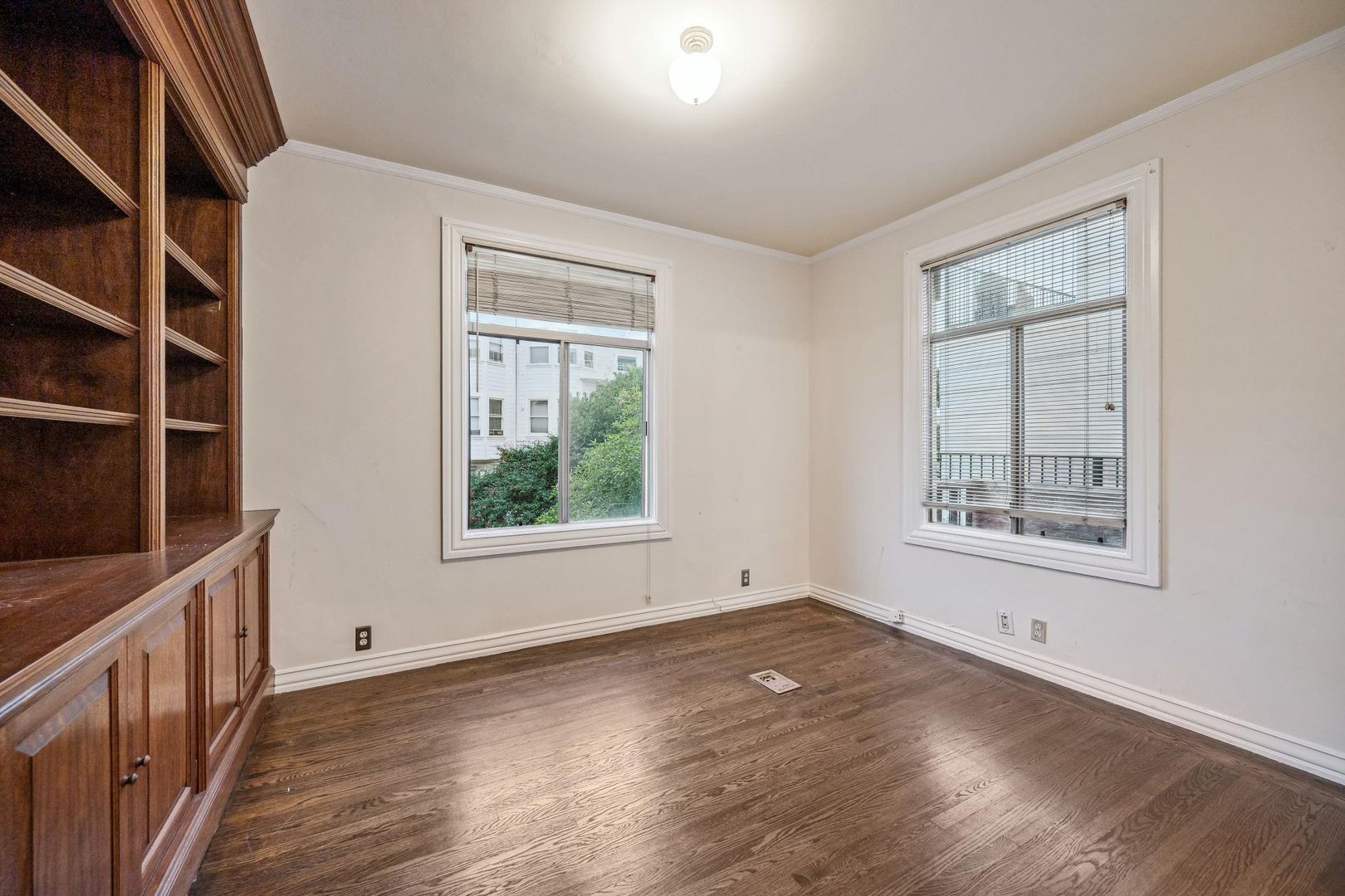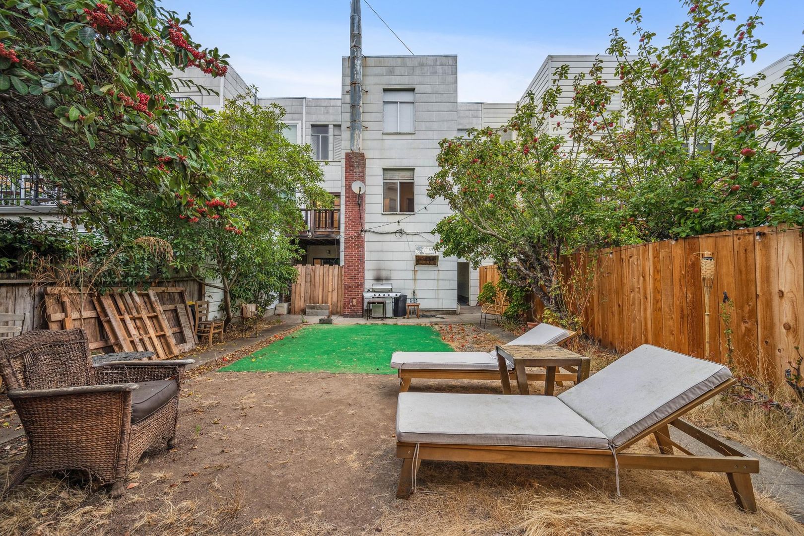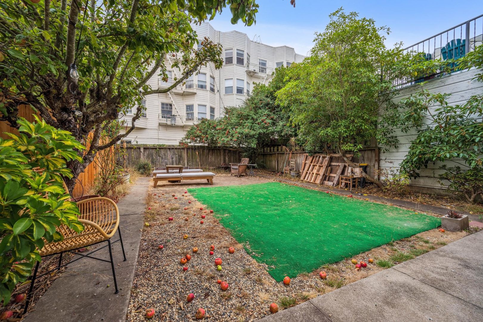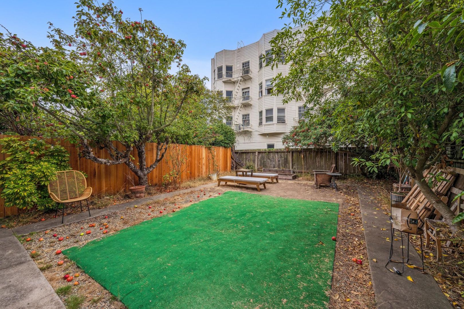 Building is located on North Point between Broderick and Divisadero, one and one-half blocks from the Palace of Fine Arts. Walk Score is 93. The beginning of Chestnut Street's shopping and dining district is 3.5 blocks away, Lombard Street is one block farther. The Marina is 3.5 blocks away as well. Shared, fenced yard has planted sides and a rectangle of artificial turf in the center. It has seating. Two-car tandem garage and storage is available for an additional fee. Pets considered. Transit Score is 79. Bus lines 28, 30 and 43 are all within a few blocks' distance.