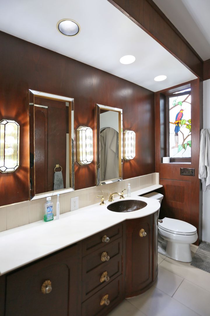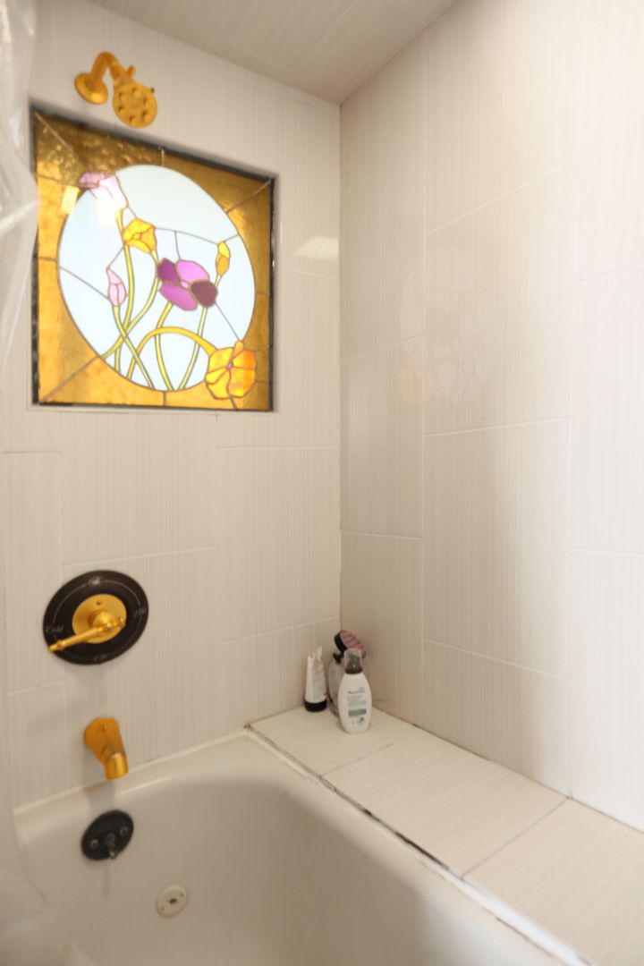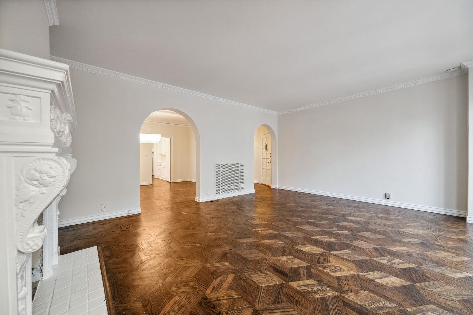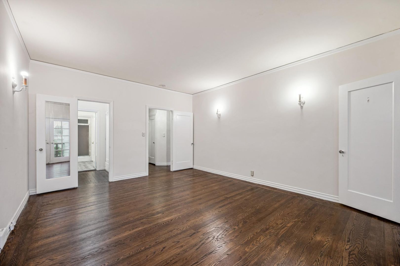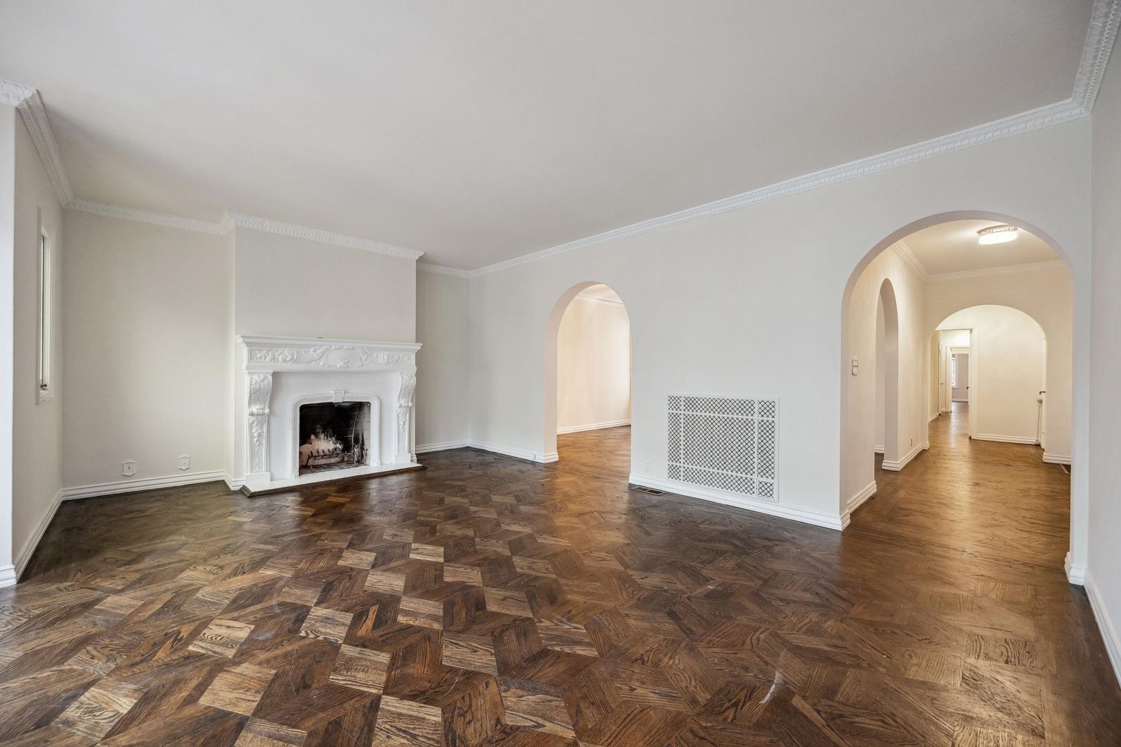 Top, second floor 4BR/2BA full flat in the Marina. Floors are hardwood except in kitchen and baths. Huge living room has arched windows facing the street and a decorative fireplace. The formal dining room is behind it and connects to the breakfast room. Breakfast room has a lot of cabinets, drawers and a counter. It is partially open and provides access to the kitchen on one side. Kitchen includes gas stove and dishwasher. A narrow room at the back of the kitchen has the refrigerator and side-by-side washer and dryer. It also has a good number of cabinets. All four bedrooms are at the back of the flat. They range in size from very large to small. The master bedroom is huge and connects to the master bath. Master bath is long and narrow. It is paneled in dark wood and has a Jacuzzi with shower at one end. The second bedroom is normal-sized and is accessed via the master bedroom. It is adjacent to the large, third bedroom. The fourth, small bedroom is next to the third bedroom. There is a linen closet just outside of it. Shared bath has shower-over-tub.