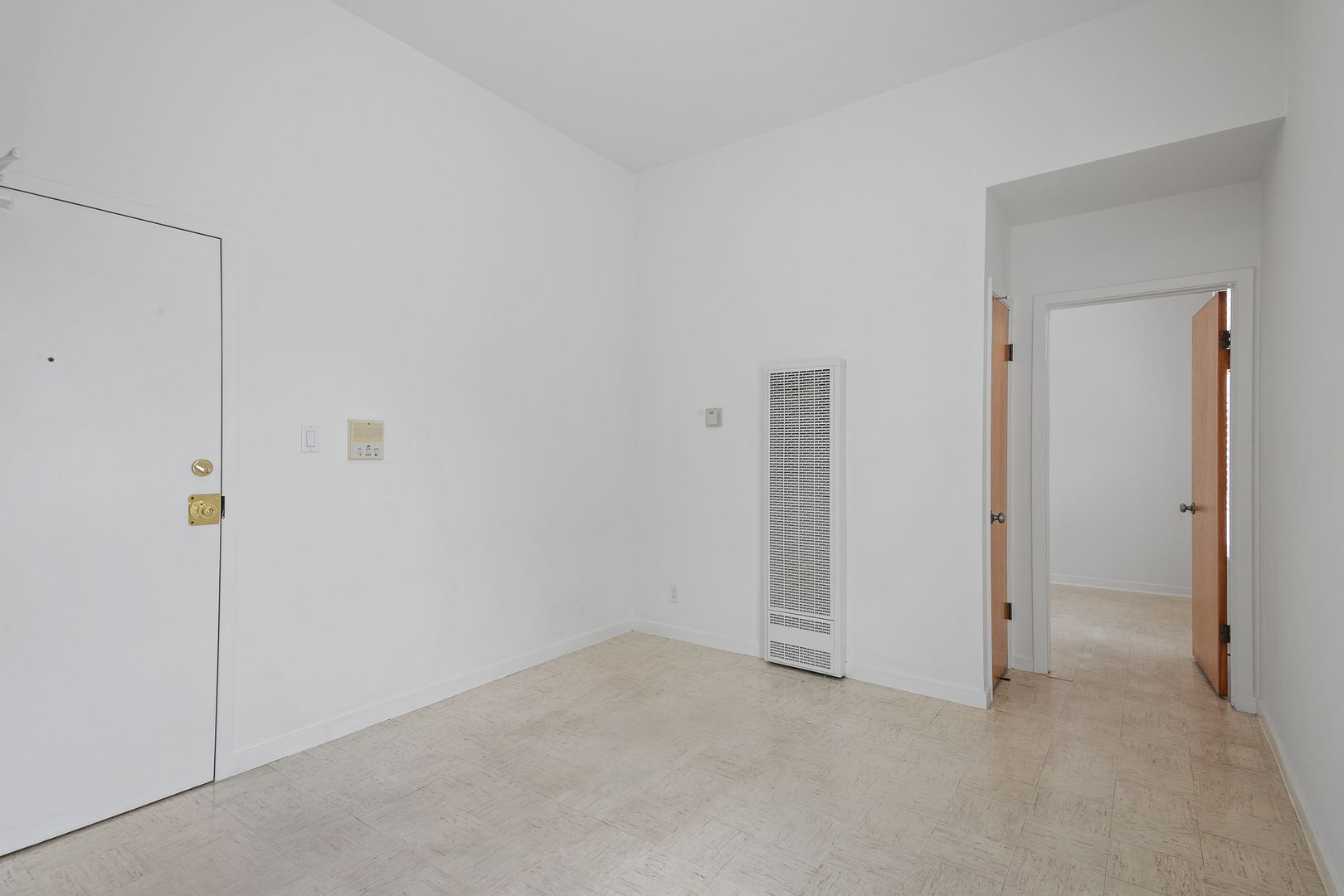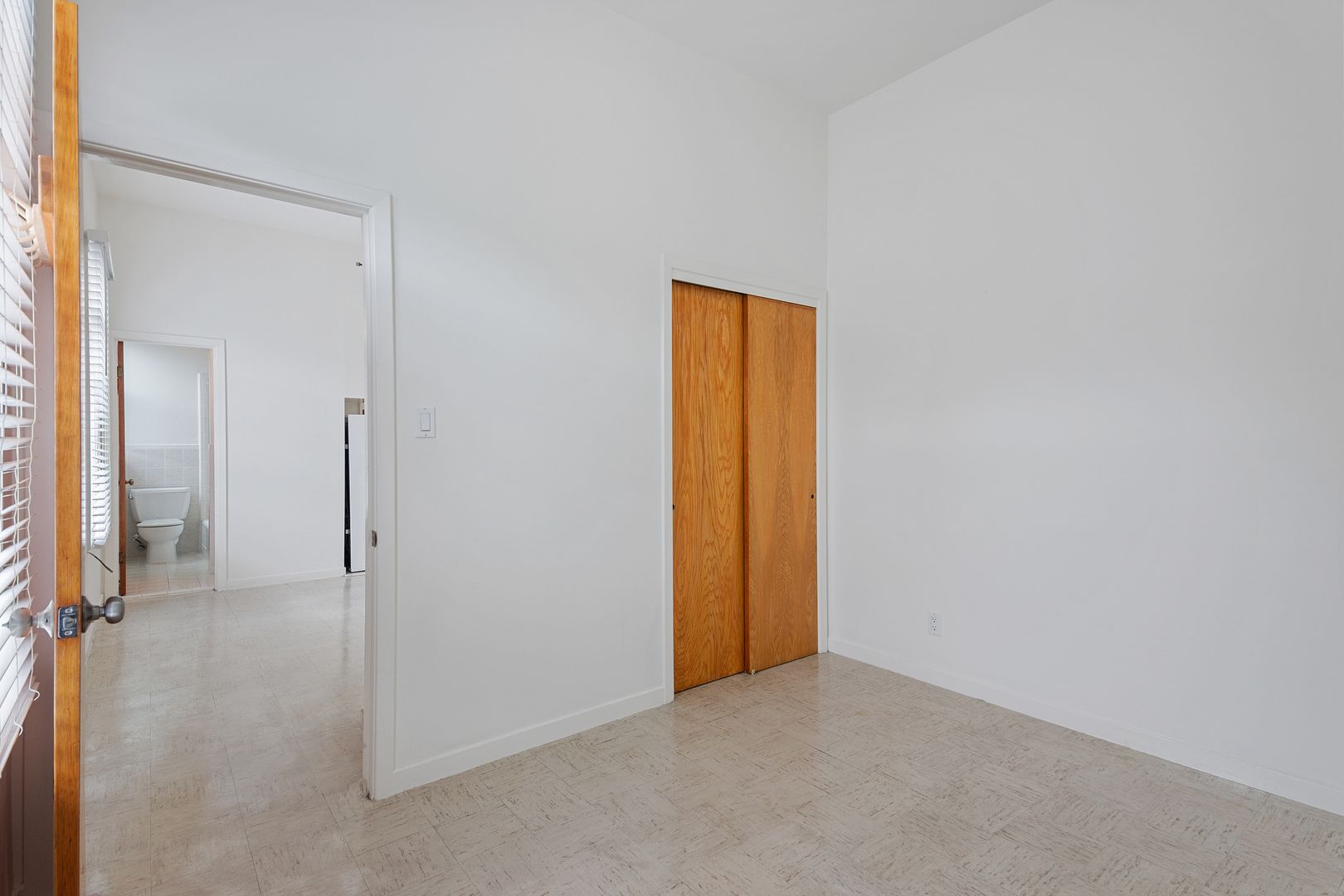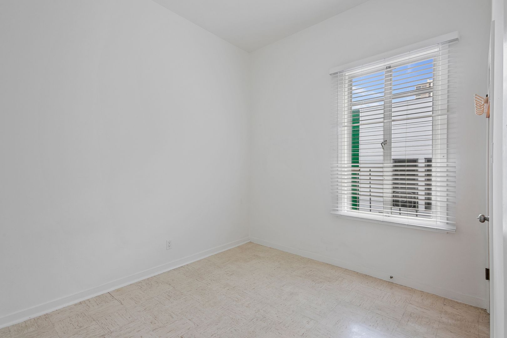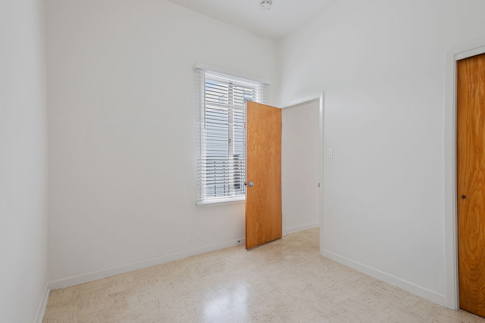 Second, top floor 1BR/1BA in North Beach. Floors are linoleum, heat is provided via gas wall heater. Kitchen is accessed from the living room and includes a gas stove. Bedroom and bath are also accessed via the living room. Bedroom has a wall closet with sliding doors. Bath has shower-over-tub.