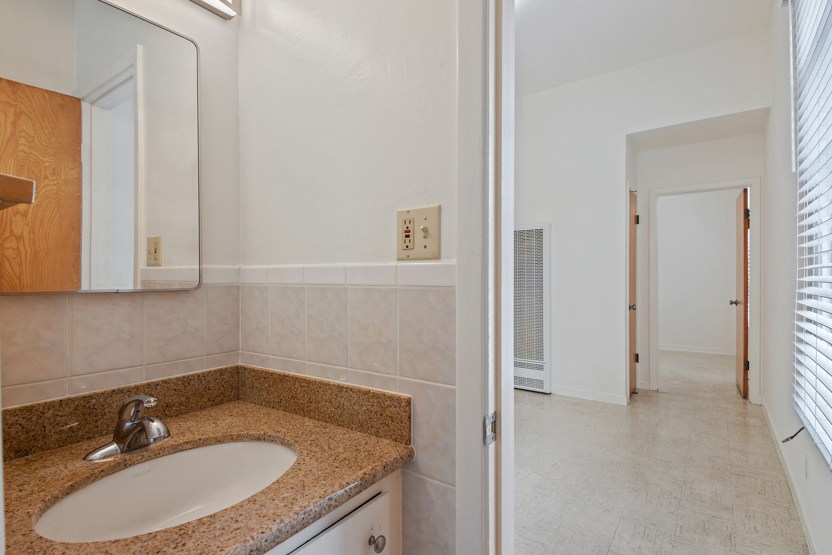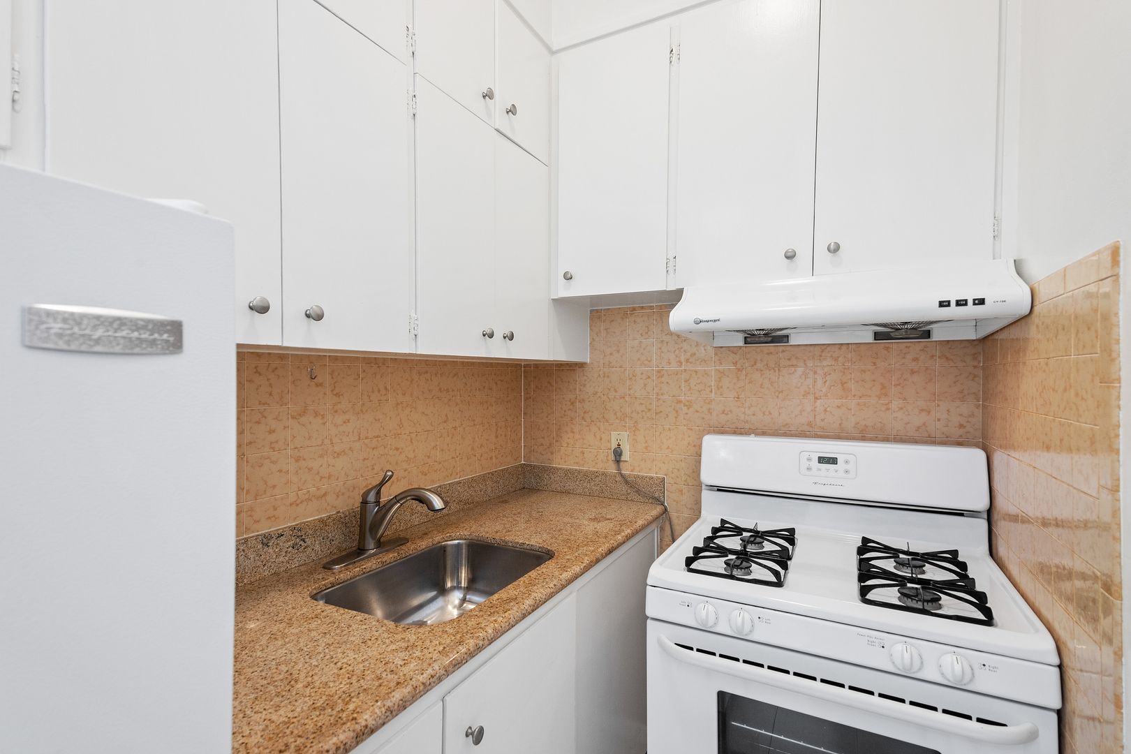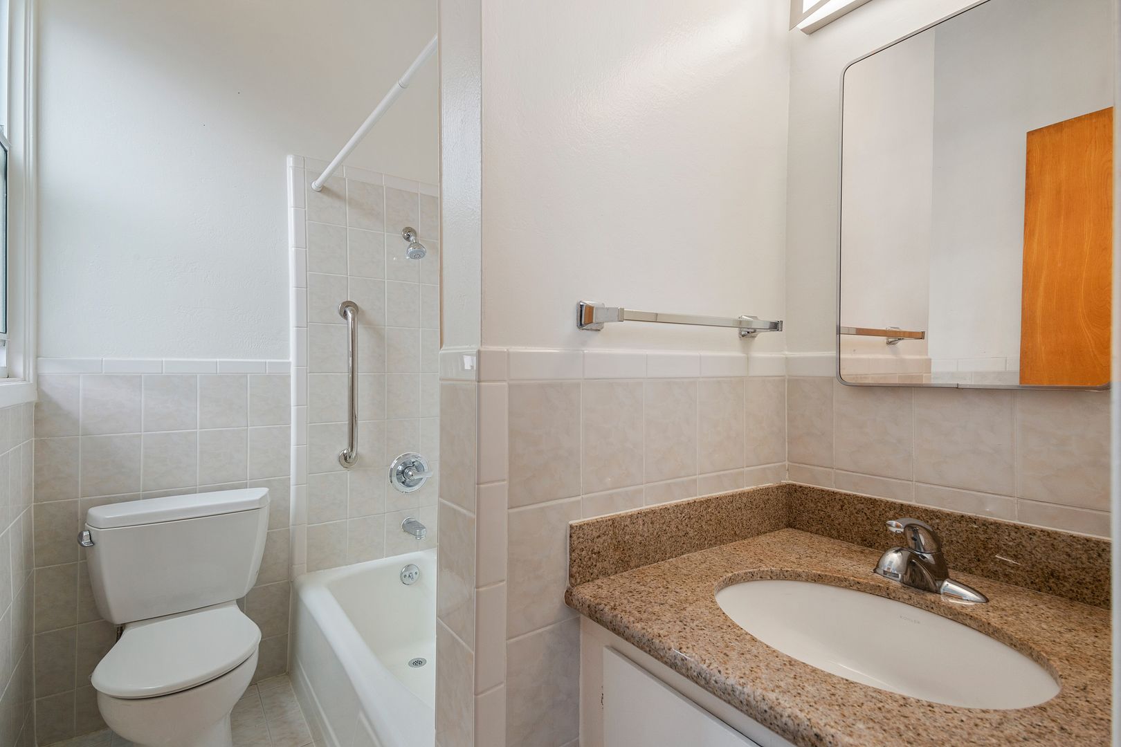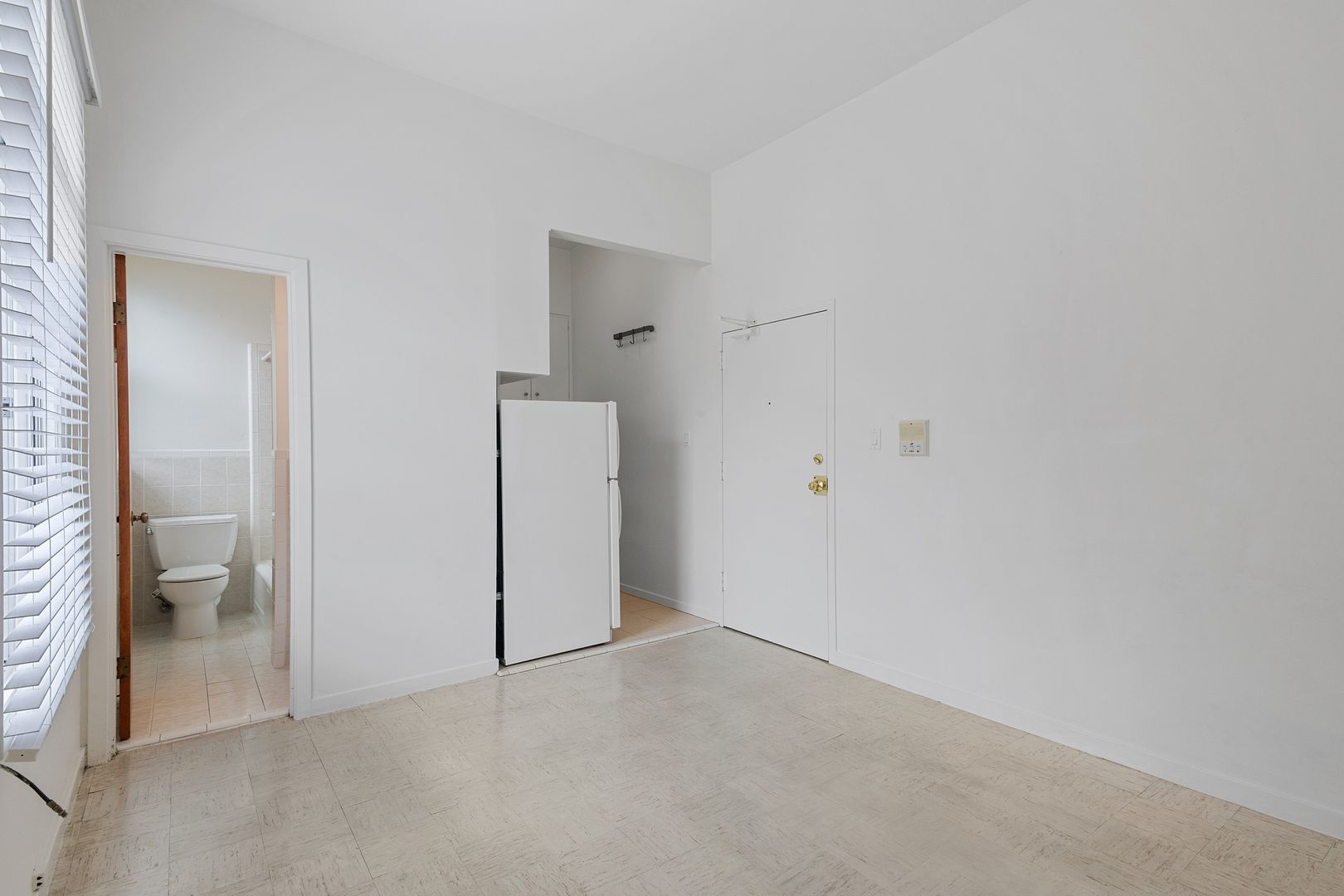 Second, top floor 1BR/1BA in North Beach. Floors are linoleum, heat is provided via gas wall heater. Kitchen is accessed from the living room and includes a gas stove. Bedroom and bath are also accessed via the living room. Bedroom has a wall closet with sliding doors. Bath has shower-over-tub.