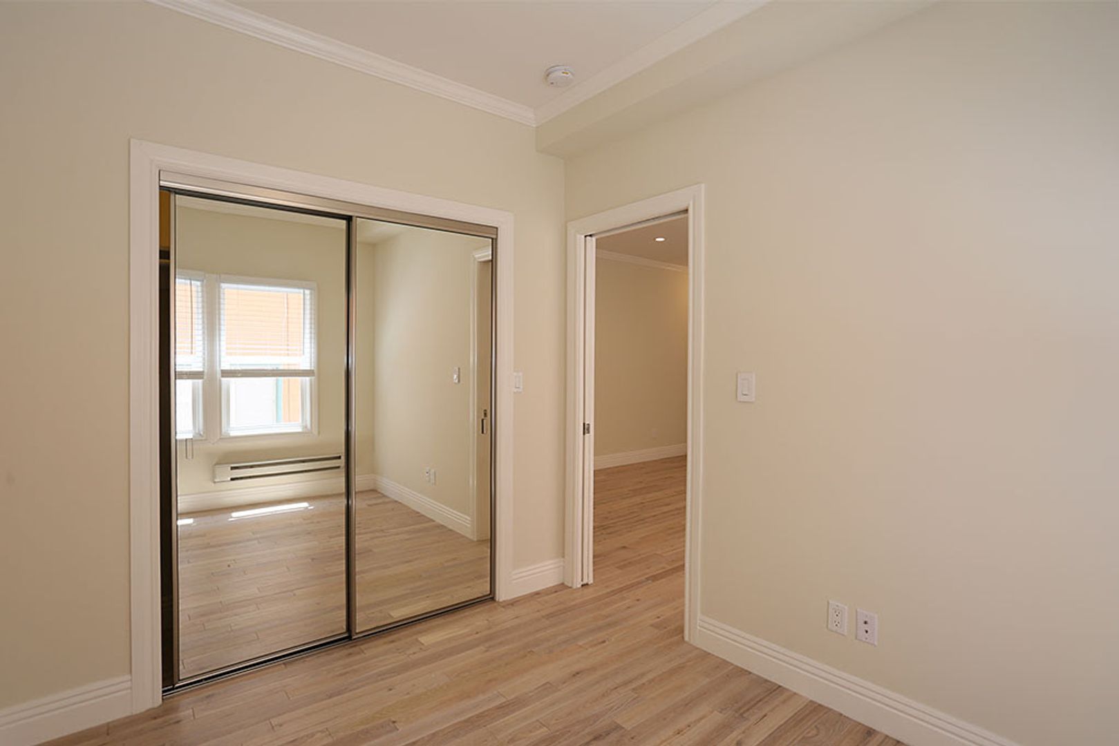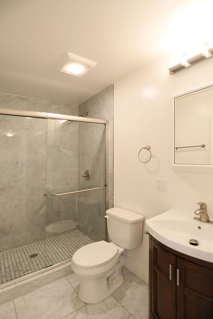 Elegant, contemporary 2BR/1BA apartment in Oakland's Ivy Hill neighborhood. Floors are pale hardwood except in bath. Rooms are bright and sunny. Large, open living room has kitchen along one wall. Stainless appliances include electric stove, microwave and dishwasher. One bedroom has a standard closet; the other has a closet with sliding mirror doors. Bath has a glass shower stall.