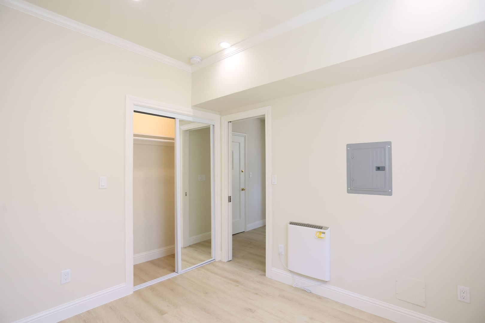 Renovated 1BR/1BA on Lake Merritt's Lakeshore Avenue in Cleveland Heights. Floors are hardwood except in bath. Bright, open living room has the kitchen in one corner. Kitchen's all stainless appliances include electric stove, microwave, and dishwasher. Bedroom has a wall closet with sliding mirror doors. Attractive bath has step-in shower with sliding glass doors.