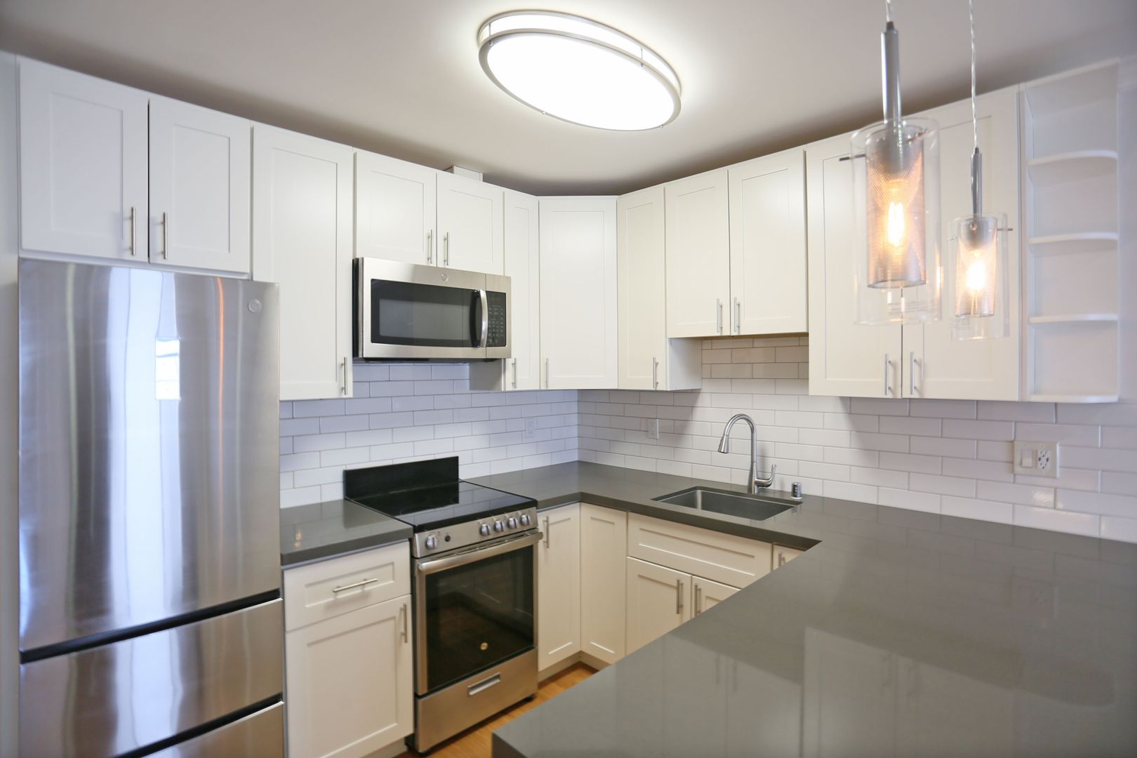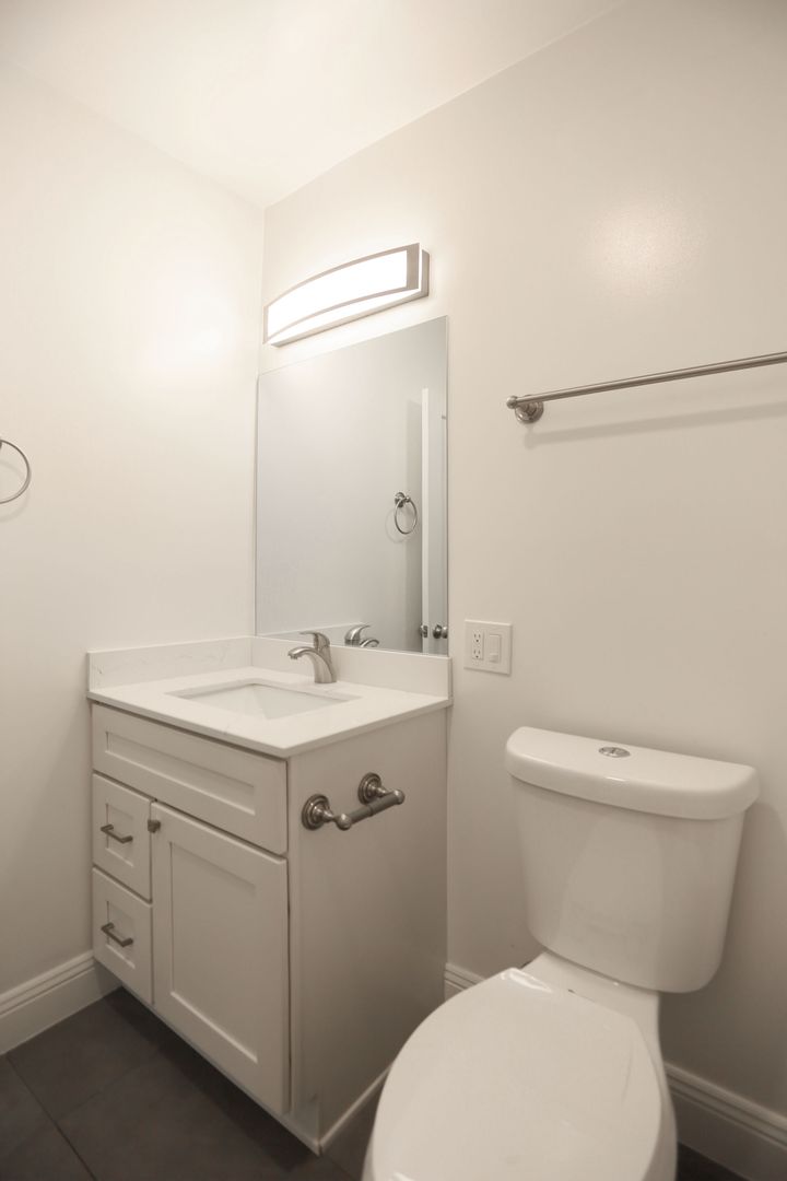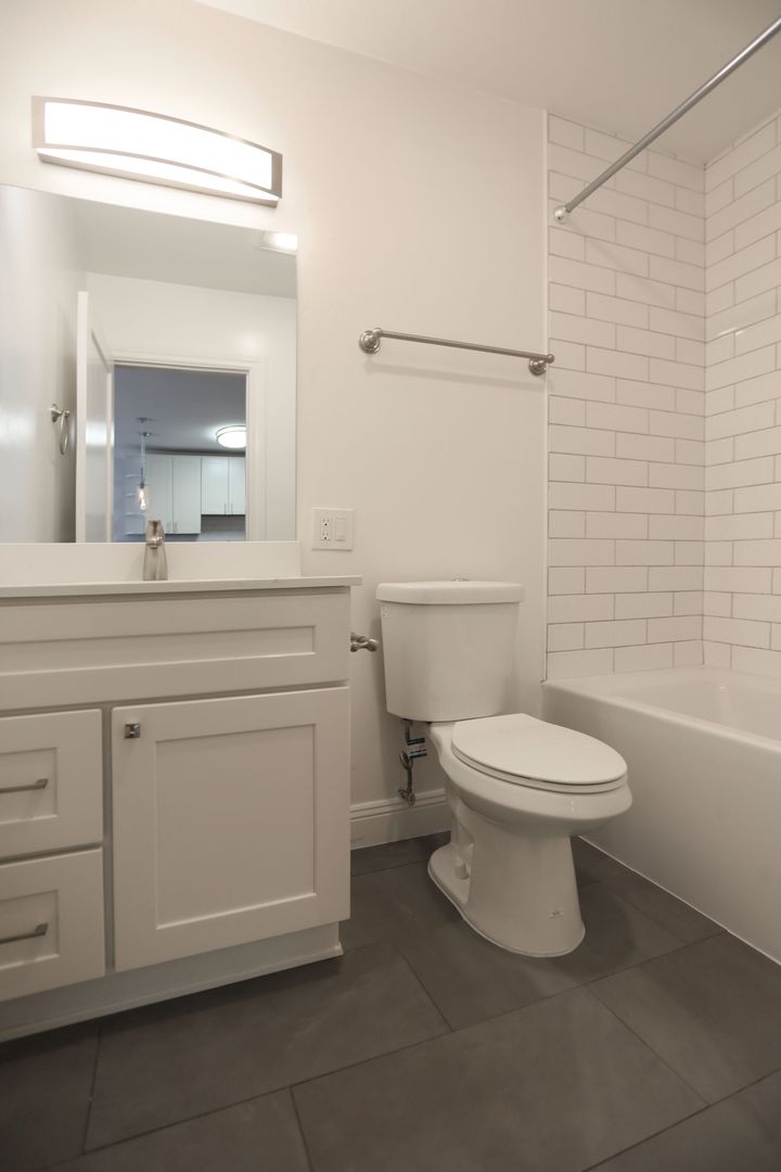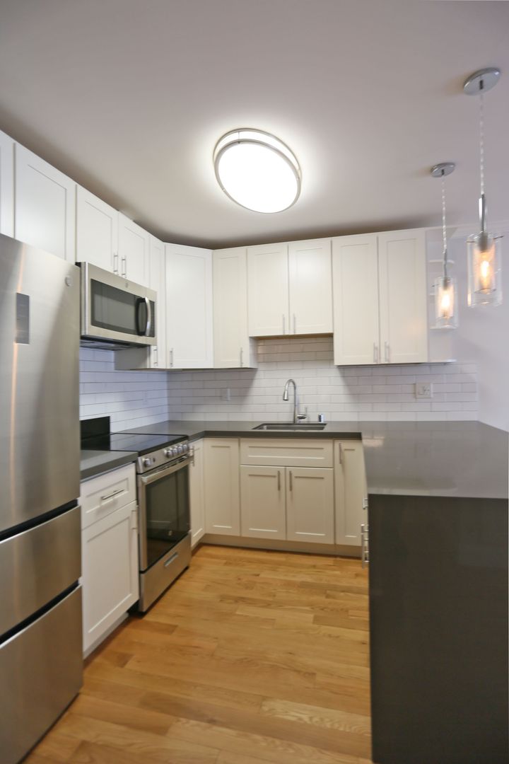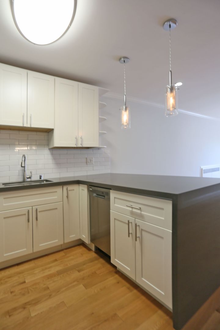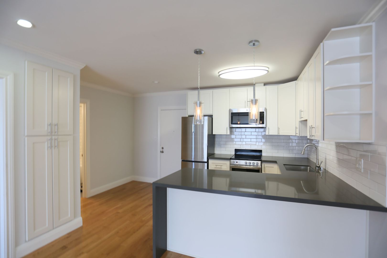 Modern, third floor 1BR/1BA just north of the western tip of Oakland's Lake Merritt. Floors are hardwood except in bath, heat is forced air. Bright, open living room has a wall with three windows and the kitchen at the far end in a corner. Kitchen includes stainless electric stove, microwave, dishwasher, and has a breakfast bar for two-three facing the living room. Bedroom has a wall closet with sliding mirror doors. It has a door to an interior stairwell. Bath has shower-over-tub.