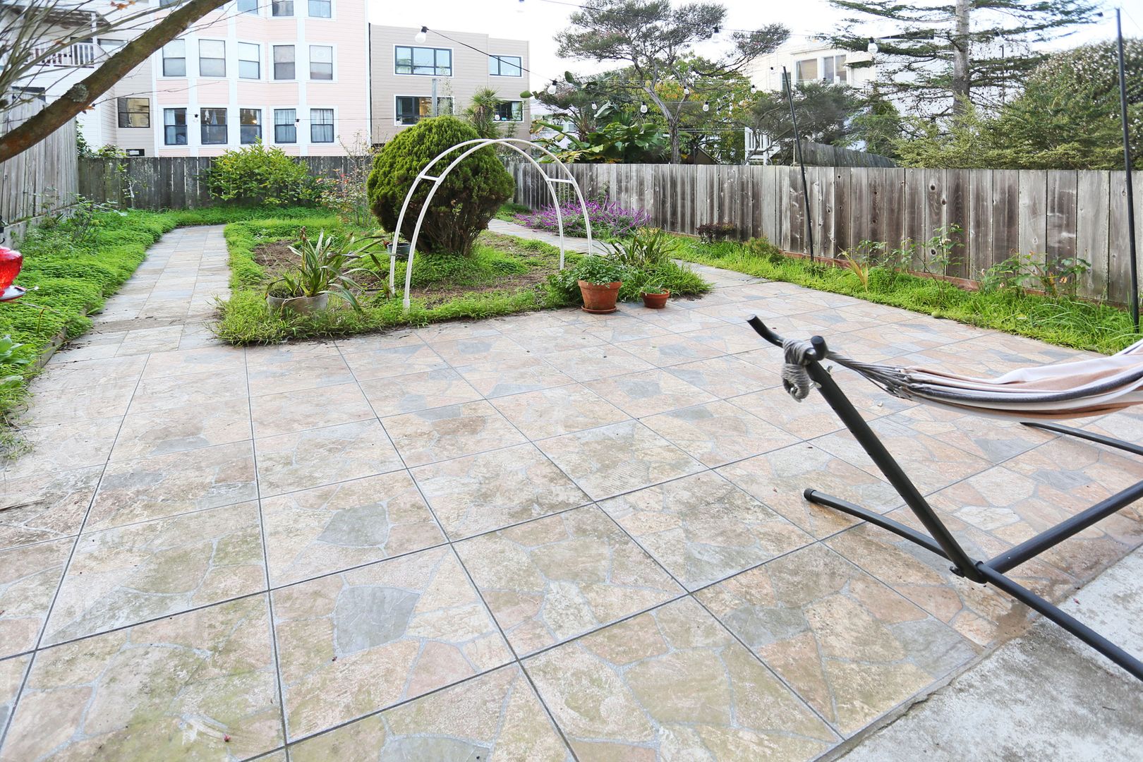 Building is on 3rd Avenue between Irving and Hugo. Large shared yard is paved and has a planted area and borders. Parking space in the building's one-car garage is available for an additional fee. It's a block-and-a-half to both UCSF Parnassus and Golden Gate Park. Many restaurants and shopping in the neighborhood, and the start of Haight Street shopping and dining is within reasonable walking distance. Walk Score is 95, Transit Score is 67. N-Judah MUNI and bus lines 6, 43 and 44 are all within a few blocks' distance. No pets.