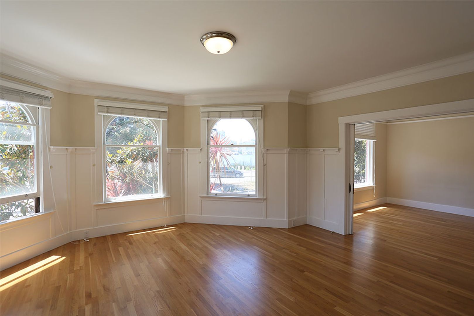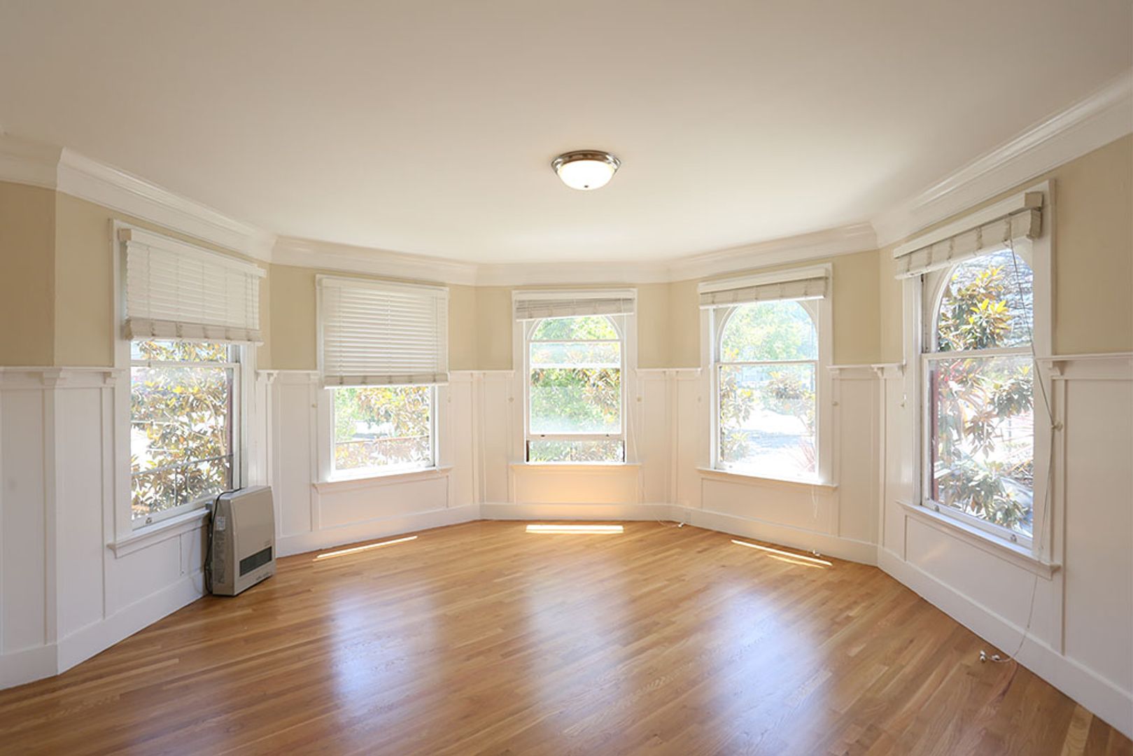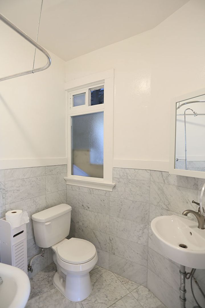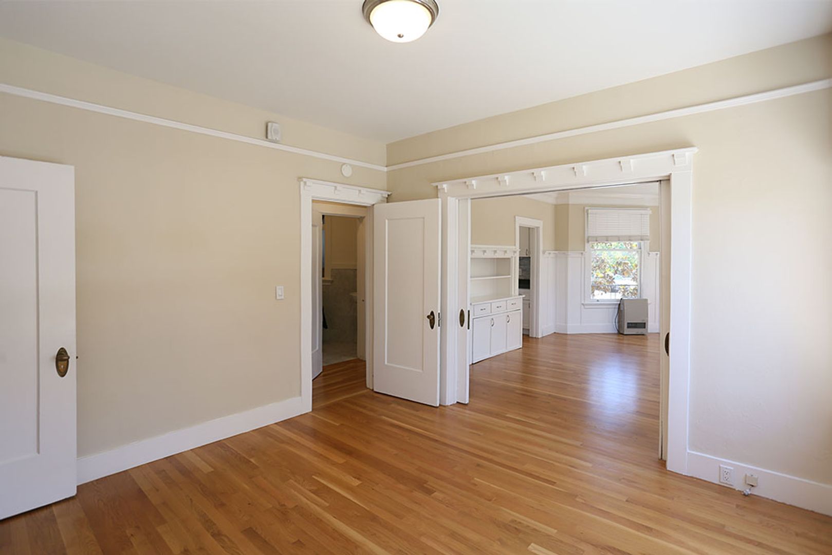 Beautiful, first floor 1BR/1BA on Lake Merritt's Lakeshore Avenue on the south side of Lake Merritt. Floors are hardwood except in bath. Living room is bright, with a five-window bay window. Kitchen is off to one side of the main room. Kitchen's all stainless appliances include gas stove, microwave, and dishwasher. Bedroom is separated from the living room by sliding wood doors. Bath has shower over claw foot tub.