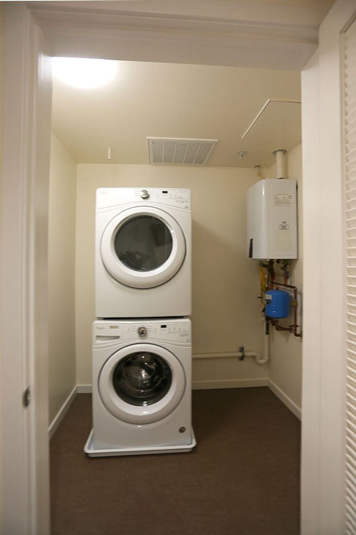 Attractive, contemporary second floor 1BR/1BA. Large, open living room with a kitchen separated from the living room by a counter with sink that provides bar-style seating at the other. Kitchen has all stainless appliances including gas stove, microwave, dishwasher and refrigerator. Bedroom has a large closet and a window opening onto the deck. Bath has standard shower-over-tub.