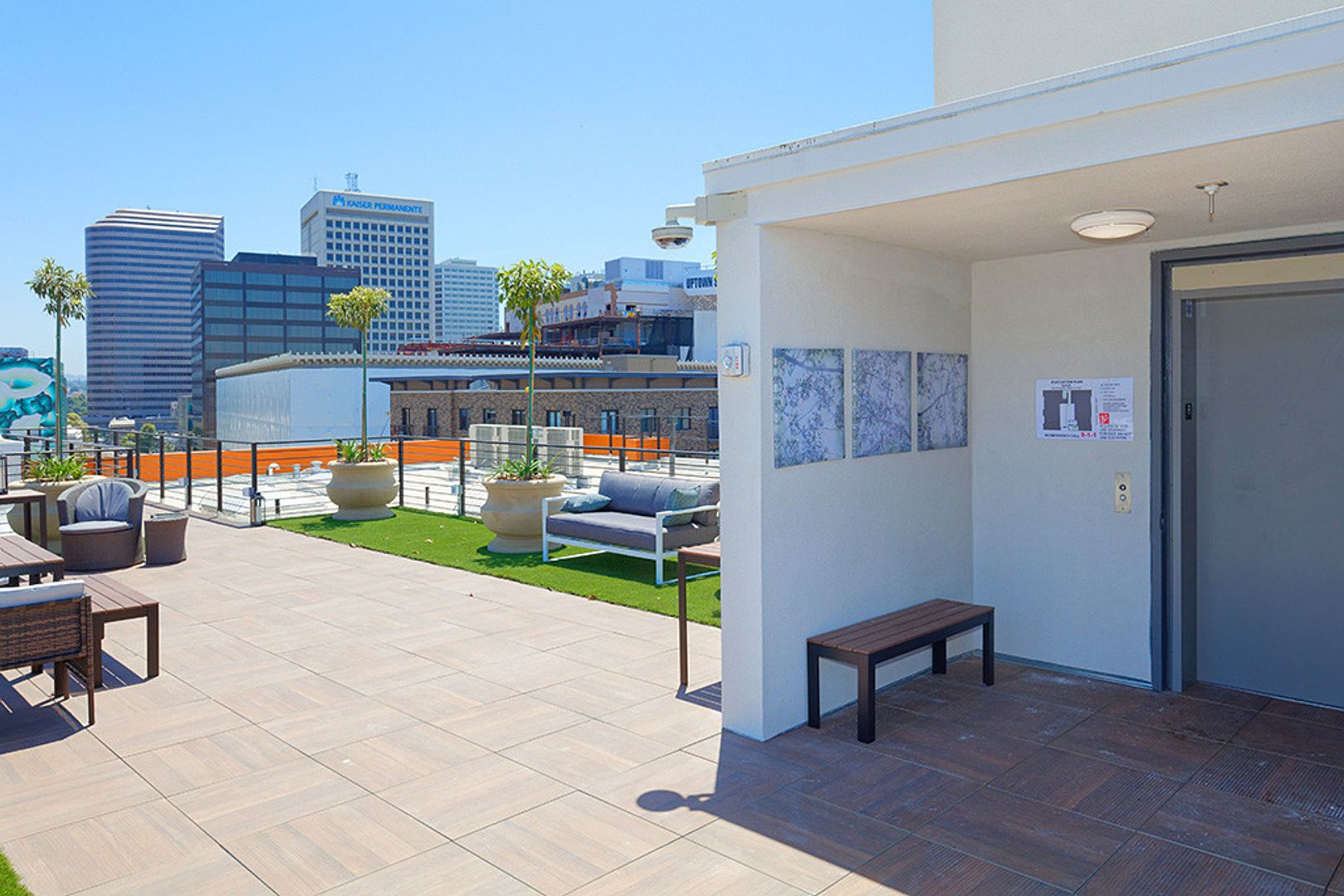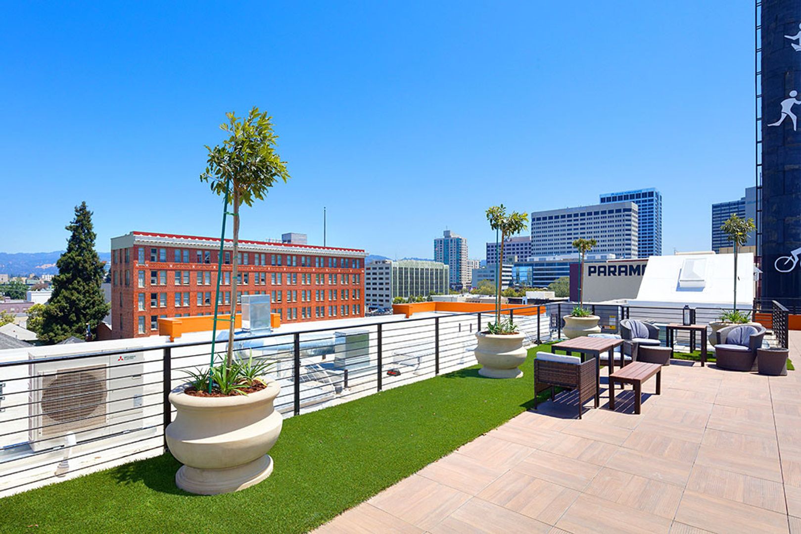Building is located in downtown Oakland on Thomas L. Berkeley Way near Telegraph Avenue. It has a large roof deck with a panoramic, 360° view, seating and tables. Ready access to local shopping and dining opportunities. Walk Score is 99, Transit Score is 75. 19th Street BART station is just a block away.