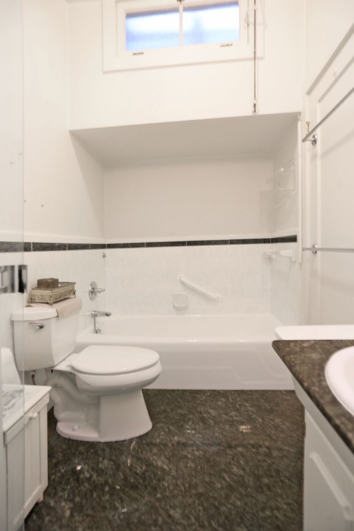 Spacious 2BR/1BA in Glen Park's Miraloma neighborhood. Floors are carpeted except in kitchen, bath, and dining room has a hardwood floor. Large living room is at the front of the home, on the second floor. It has a decorative fireplace and bay windows. Living room connects to the formal dining room, which can easily seat six comfortably. Kitchen is connected to the dining room. It includes granite counters, electric stove with ventilation hood, and has lots of cabinets. Dining room and kitchen can also be accessed via the central hallway. Entry area has a walk-in closet. Bedrooms are mid-home and at the back. Both bedrooms are bright. Back bedroom is on a corner and has a walk-in closet. Mid-home bedroom has a large standard closet. Bath has tub, shower stall, skylight, and transom window. There is a linen closet in the central hallway outside the bath. Ground floor has a garage with ample storage space as well as washer and dryer. Fenced, concrete-paved shared yard is at the home's back. Pets considered.