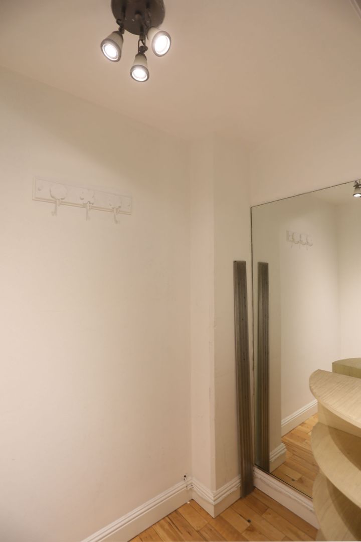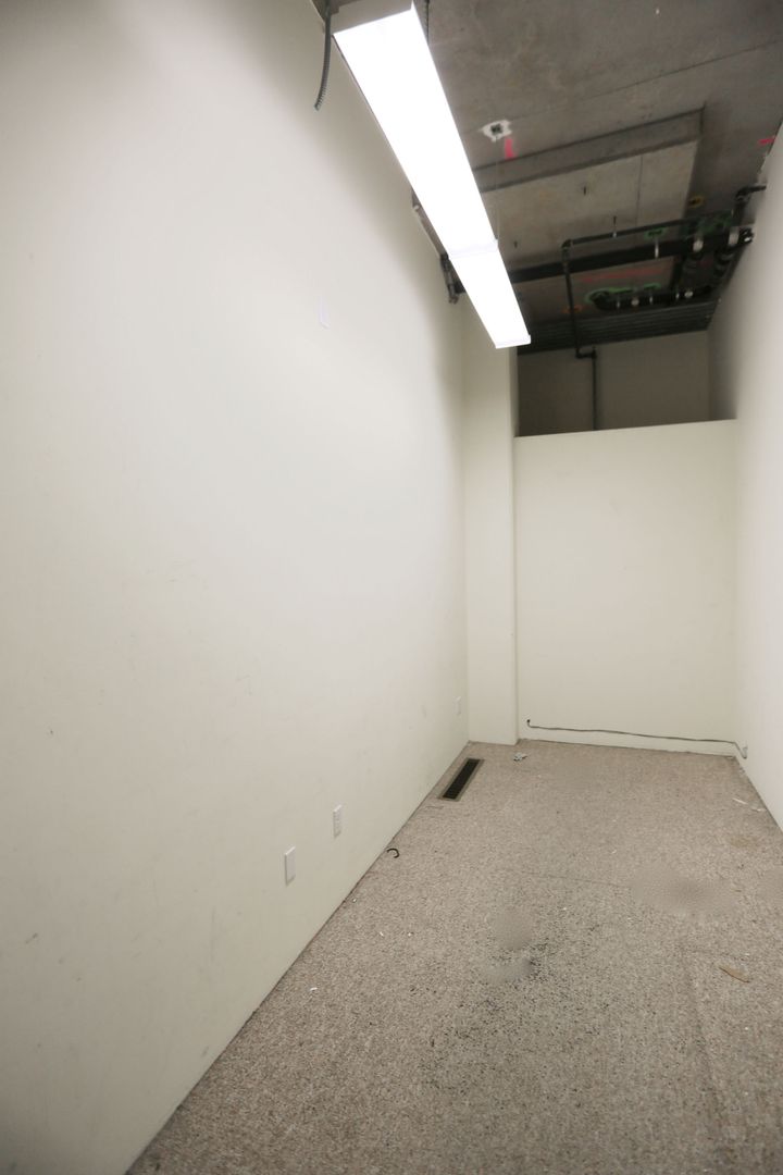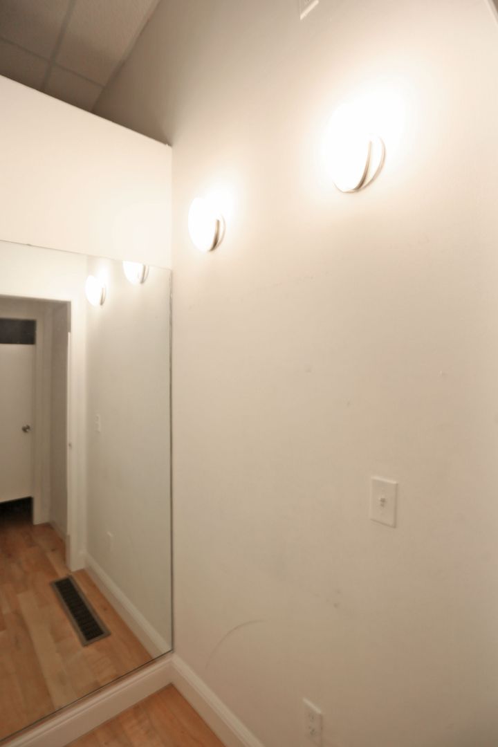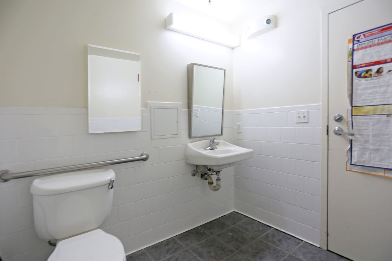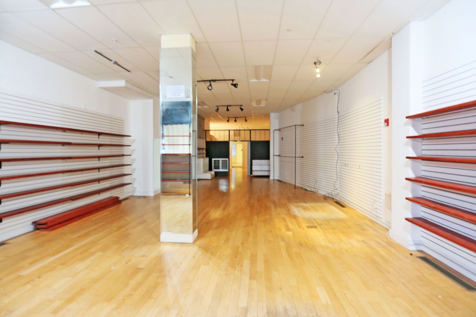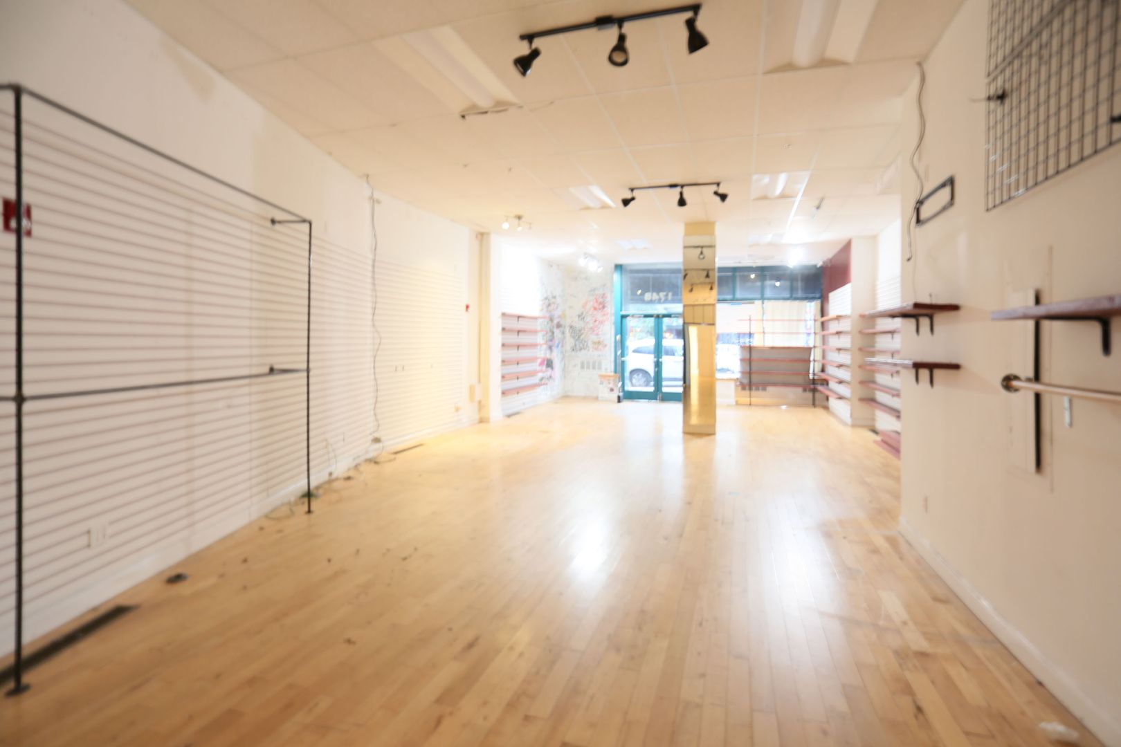 Floors are hardwood except in back office and storage/additional office space which are carpeted. Restroom is tiled. Large main space at the front of the store has an area at the back, approximately one fifth of the total front space, which is semi-partitioned and was used in part as an employee lounge. Three dressing rooms are accessed from this area. There is also a door to the rear of the venue which leads to a space that could partially be used for storage. It provides access to the restroom and an enclosed office.