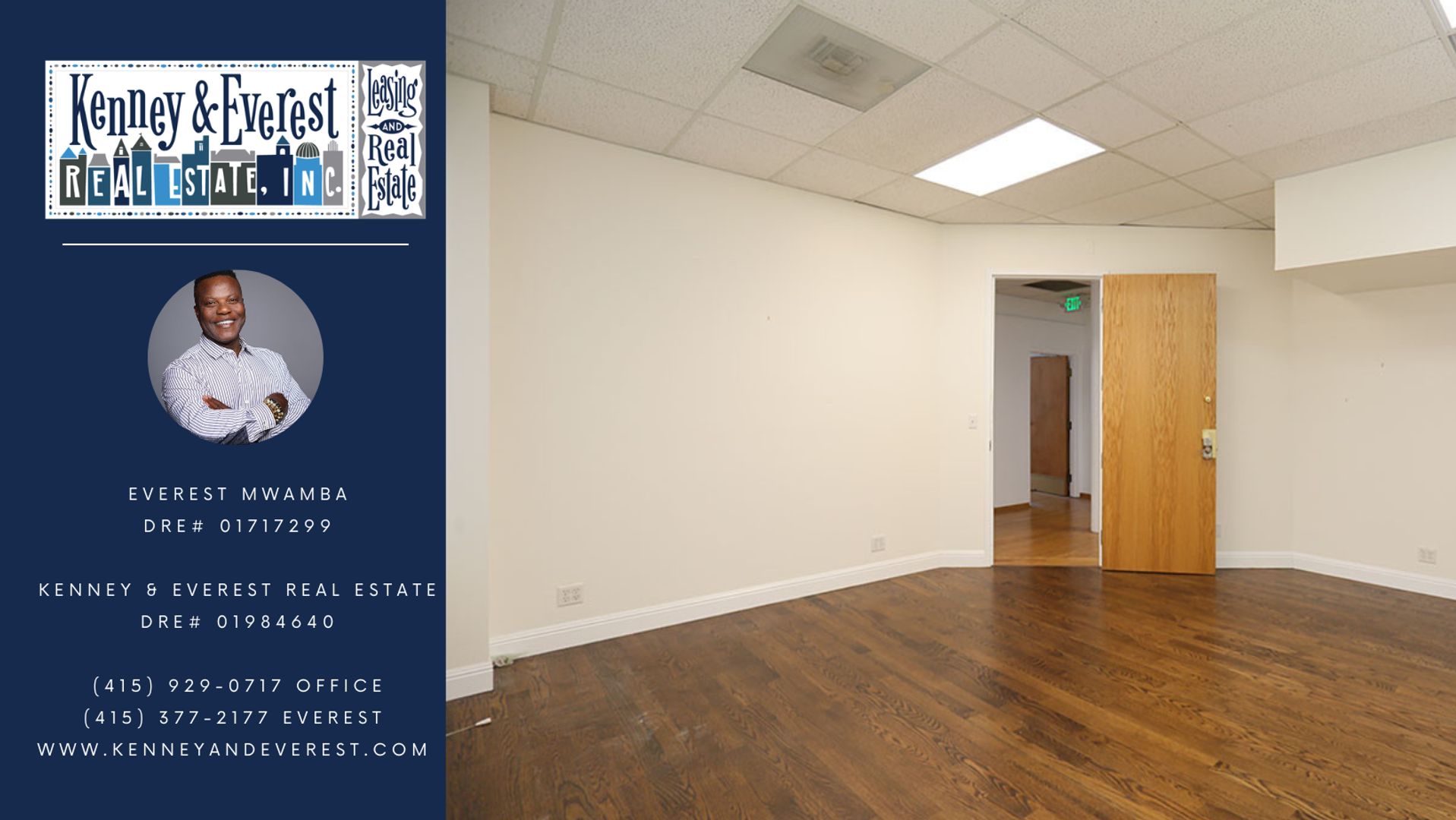 Second floor, single room suite in a commercial building on Divisadero between Fell and Oak. Building has an elevator and commercial spaces share restrooms.