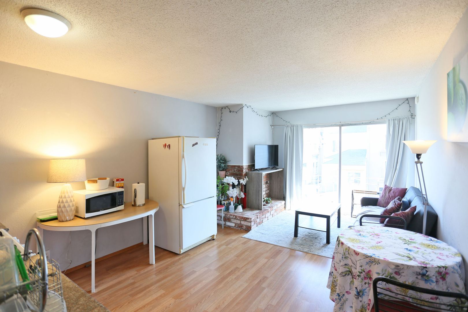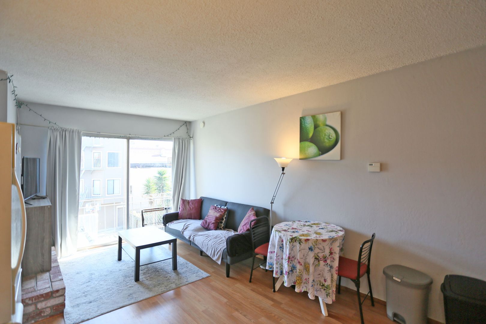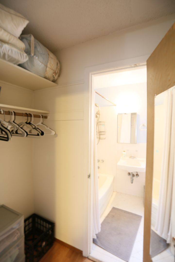 Spacious 2BR/1BA in the Richmond. Floors are hardwood except in bath. The kitchen is at the back of the room along one wall. It includes a gas stove. One of the two bedrooms connects directly to the bath. Bath has shower-over-tub. Pet friendly.