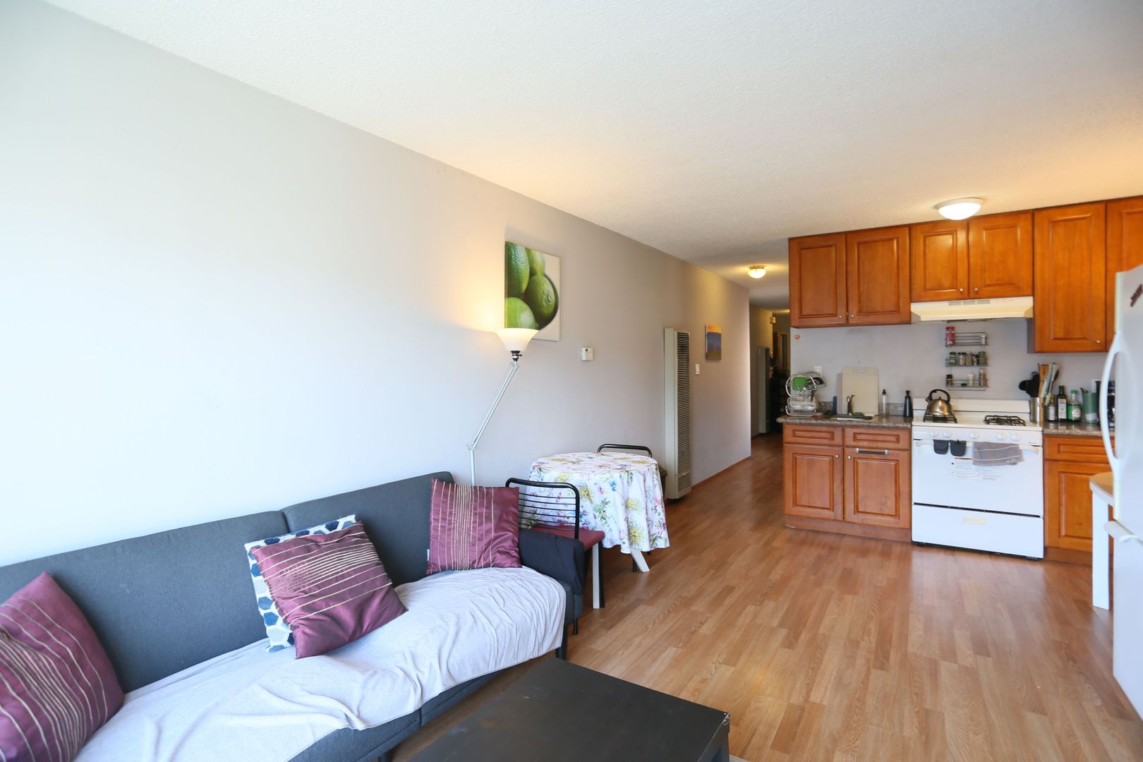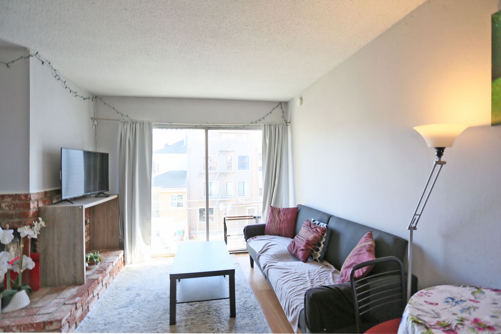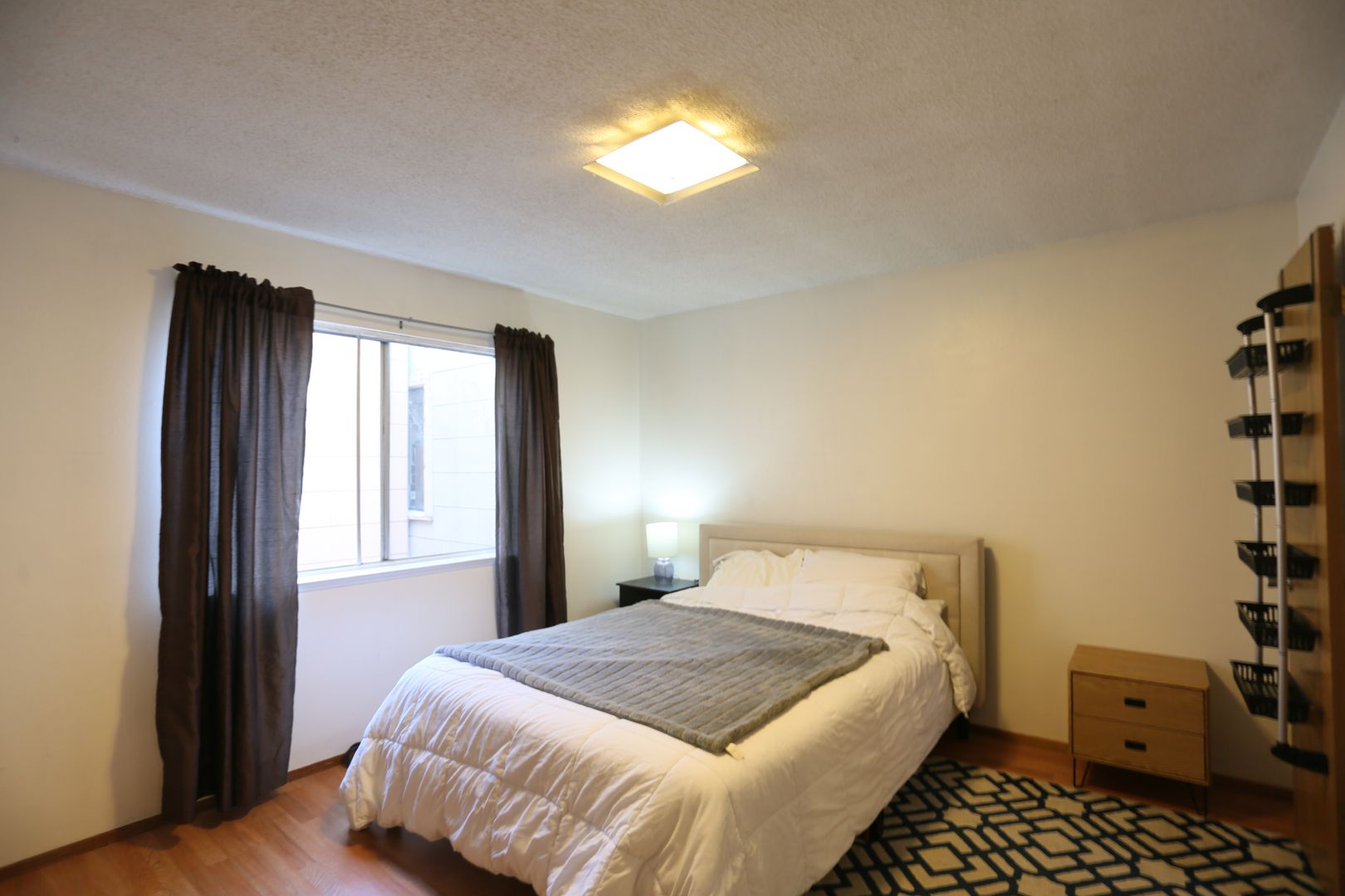 Spacious 2BR/1BA in the Richmond. Floors are hardwood except in bath. The kitchen is at the back of the room along one wall. It includes a gas stove. One of the two bedrooms connects directly to the bath. Bath has shower-over-tub. Pet friendly.