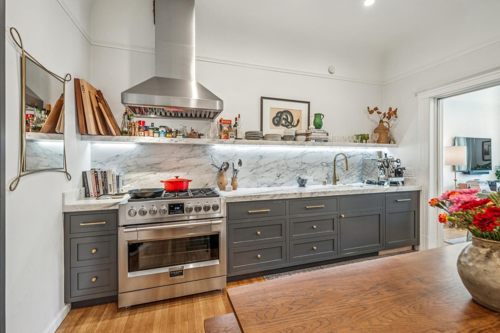 Exceptional and generously sized 2BR/1BA in the heart of the Russian Hill, this unique apartment features expansive rooms with classic architectural details, including high ceilings and hardwood floor. The large living room offers abundant sunlight from south‑facing windows. The updated kitchen offers high‑end stainless appliances and thoughtful finishes with room for a comfortable dining setup.