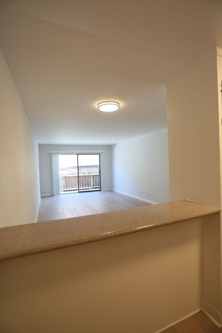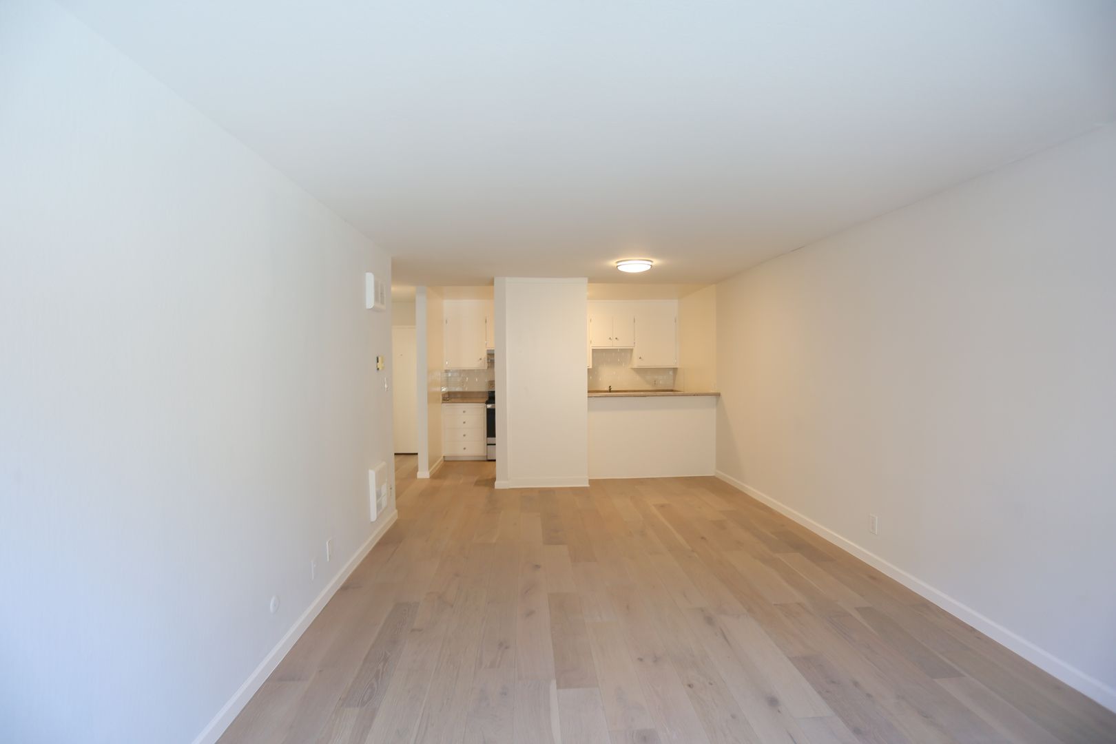 First floor 1BR/1BA in Oakland Avenue/Harrison neighborhood. Floors are hardwood throughout except in bath. Heat is via wall heaters. Huge, open living room has kitchen at the entrance end, doors to deck at the far end. Large deck is partially covered and can be accessed both from living room and bedroom. Kitchen is separated from the living room by a breakfast bar for two. Stainless appliances include electric stove and dishwasher. Bedroom has sliding doors which open onto the deck. It has a walk-in closet. Bath has shower-over-tub with sliding glass doors.