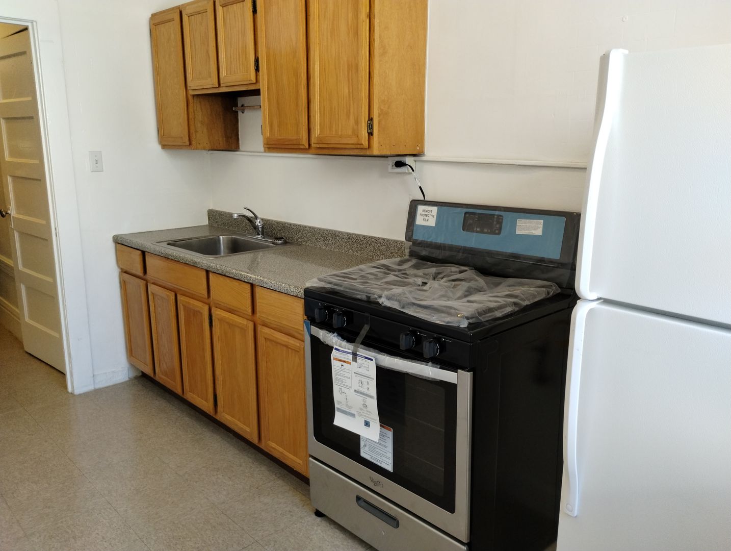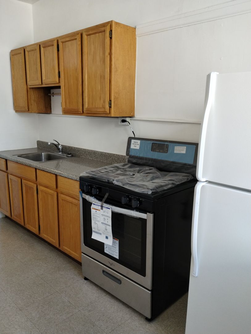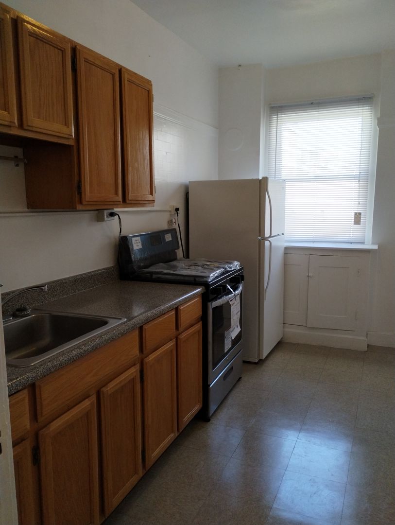 Downtown district fourth floor studio on Bush at Mason. Heat is steam. Unit is bright, sunny, and has a city view with the Bank of America and the top of the Transamerica Pyramid. Main room has fashionable lighting, built-in shelving, and a wall closet with sliding mirror doors. Kitchen includes a new gas stove. There is a large hall closet. Bath is standard with shower-over-tub.