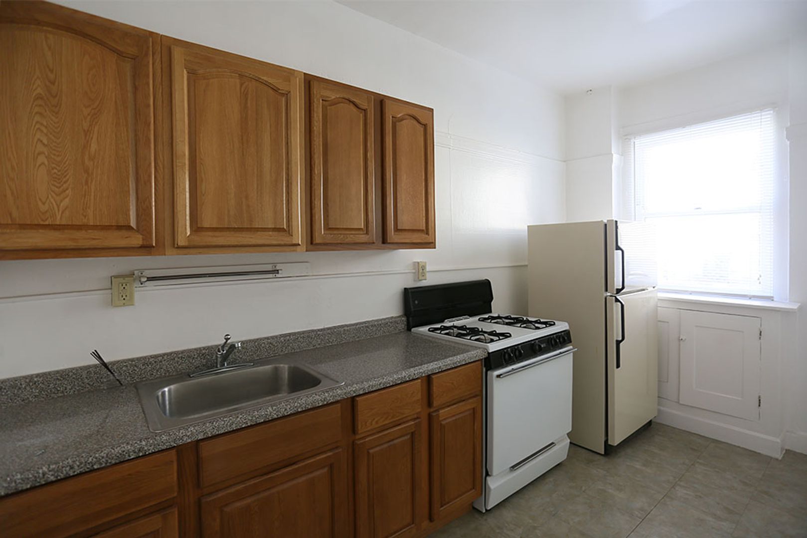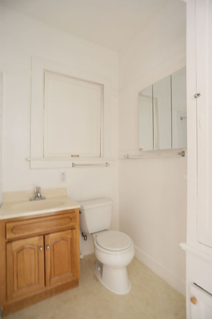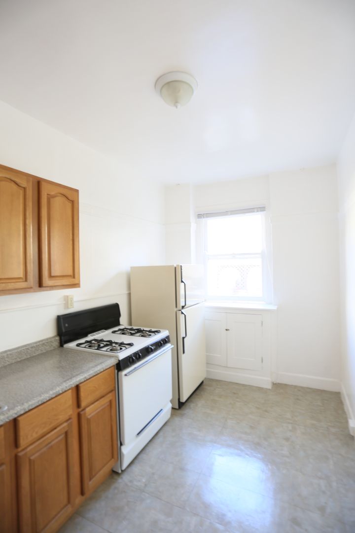 Downtown district third floor Jr 1BR/1BA on Bush at Mason. Bright studio's main room has hardwood floor, deep closet with sliding mirror doors, and built-in shelving. Heat is steam. Kitchen includes gas stove, has linoleum floor and room for a modest dining arrangement. Bath is standard with shower-over-tub. There is a very large hall closet.